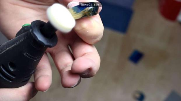 ▼Để cho nhựa epoxy trông giống như “đá quý”, Peter đã bỏ ra thời gian rất lâu để đánh bóng tinh tế.