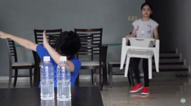 Lúc này mặt cậu bé Ranz đã biến sắc vì kinh ngạc quá đỗi! Thế nhưng sau khi xem xong, một số cư dân mạng đã để lại lời bình luận: “Quay ngược chai nước khó hơn nhiều”, “Chiếc ghế có 4 chân nên dễ cân bằng đứng yên hơn là chai nước”.