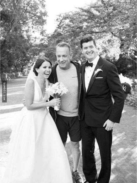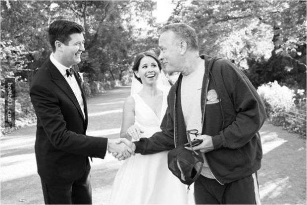 ▼ Tom Hanks đang chạy bộ trong công viên Trung tâm New York (Central Park) thì tình cờ gặp phải một đôi tân lang và tân nương đang chụp ảnh cưới. Lúc này Tom Hanks đã bỏ mũ của mình ra, tiến đến cặp đôi và nói: “Xin chào, tôi là Tom Hanks.” Đến đây cặp đôi đã không thể tin vào mắt mình và vui mừng khôn xiết!