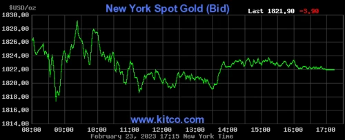 Trong phiên giao dịch ngày 23/2 trên sàn New York, giá vàng vừa trượt xuống dưới ngưỡng 1.818 USD/ounce, đánh dấu mức thấp nhất kể từ đầu năm, rồi bật tăng phần nào lên 1.820 USD/ounce, nhưng vẫn giảm 5 USD/ounce so với phiên liền trước.