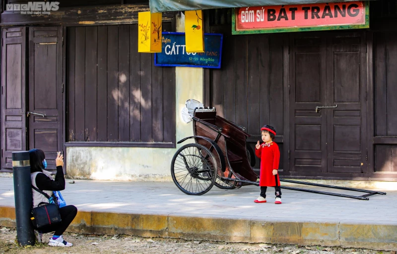 Nơi đây có rất nhiều góc đẹp 'đốn tim' các bạn trẻ, trong đó có góc mô phỏng lại những con phố xưa của Hà Nội. Nhiều bạn trẻ tỏ rõ sự thích thú khi biến mình thành phu xe kéo trong những thập niên 90.