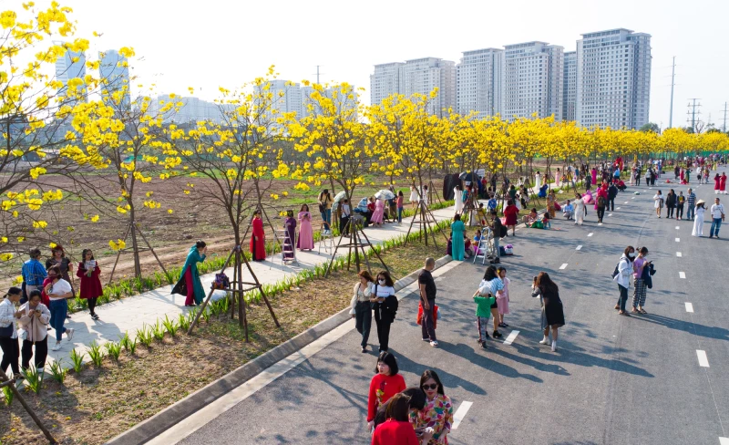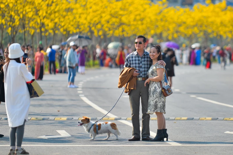 Dọc con đường hoa khoảng 200 m đều có người dân đứng chụp ảnh