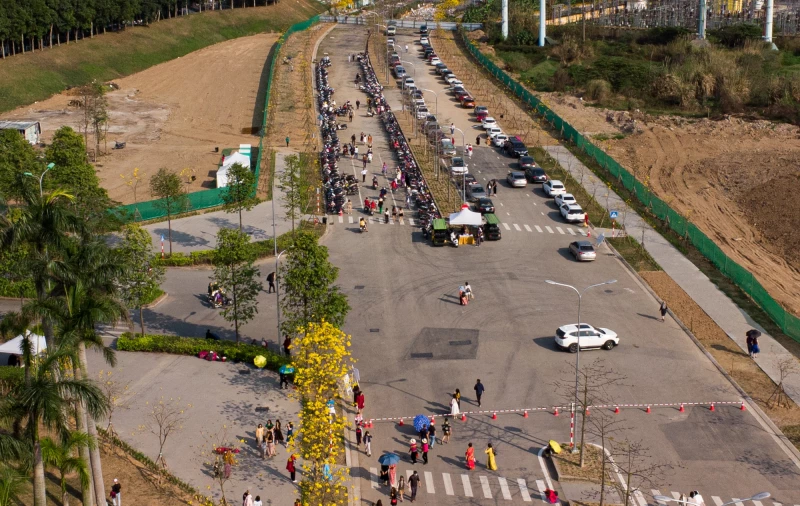 Rất đông người dân có mặt tại con đường hoa phong linh vào chiều 25.2