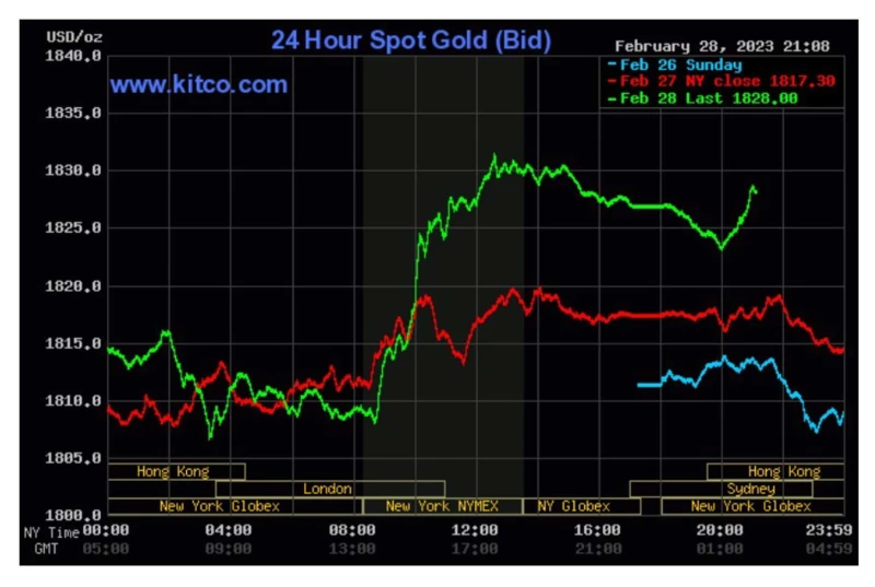 Giá vàng thế giới tính đến 9h30 sáng nay được niêm yết trên Kitco ở ngưỡng 1.828 USD/ounce, tăng 10,4 USD/ounce so với mở cửa phiên giao dịch sáng qua.