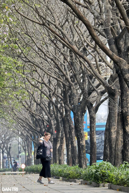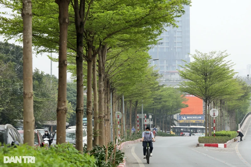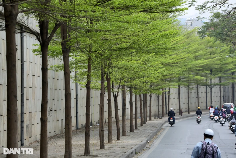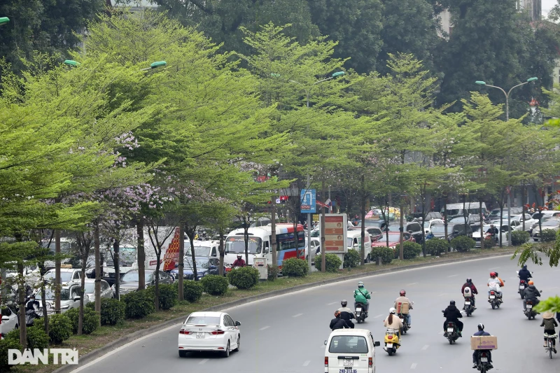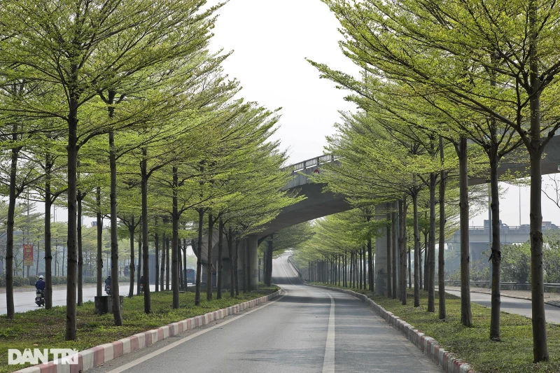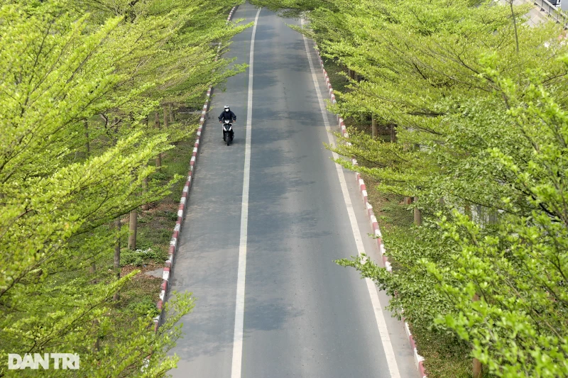 Mùa xuân là lúc vạn vật sinh sôi nảy nở, cây cối đâm chồi nảy lộc, tốt tươi, những con đường trồng nhiều cây xanh sẽ cho cảm nhận rõ ràng nhất bởi thiên nhiên tươi đẹp. Ảnh chụp đường Láng ngày 2/3 (vị trí giáp ranh giữa quận Đống Đa và Thanh Xuân).