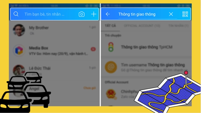 Bước 2: Tại giao diện chính Zalo phiên bản mới nhất, bạn nhấn vào biểu tượng tìm kiếm trên màn hình và truy cập từ khoá “ thông tin giao thông”.
