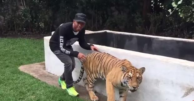 Trong video, tại Mexico, một con hổ bình tĩnh đi về phía trước, lúc này phía sau nó xuất hiện một chàng trai, tuy nó có phát hiện ra nhưng không để ý. Chàng trai cúi người xuống, nhẹ nhàng chạm vào sau lưng con hổ, ai ngờ con hổ sợ hãi kêu lên một tiếng, lập tức xoay người ngã xuống đất.