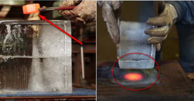 Gần đây, họ lại làm một thí nghiệm khác sử dụng một cục sắt hình lục giác để làm tan chảy cục đá, kết quả, khi đá và sắt nóng chạm vào nhau, cảnh tượng nước đá tan chảy nóng xèo xèo trên mặt tấm sắt trông thật thú vị!
