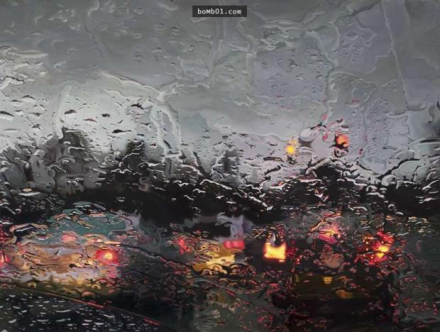 Gregory sử dụng màu nước và sơn màu để tạo nên hiệu ứng mưa một cách hoàn hảo. Nhìn vào bức tranh này gợi cho ta đến chuyến du lịch bằng ô tô trong ngày mưa lạnh.