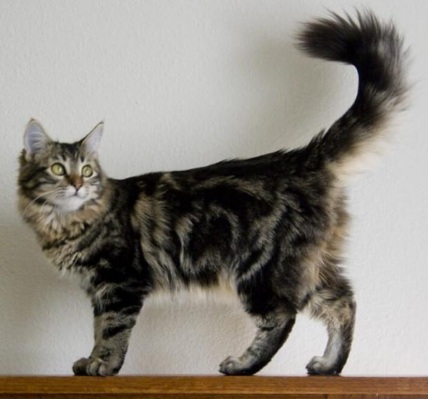 Đó là loài mèo lông dài Maine Coon. Đây là một nòi mèo nhà có đặc điểm kiểu hình đặc trưng và có kỹ năng săn mồi đáng nể. Nó là một trong những nòi mèo tự nhiên cổ xưa nhất ở Bắc Mỹ. Mèo Maine Coon còn được gọi là “gã khổng lồ nhẹ nhàng” của loài mèo.