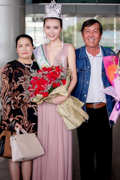 Tại sân bay, ngoài bạn bè và người thân, tân hoa hậu còn được khán giả nhận ra và vây quanh cô chụp ảnh lưu niệm.