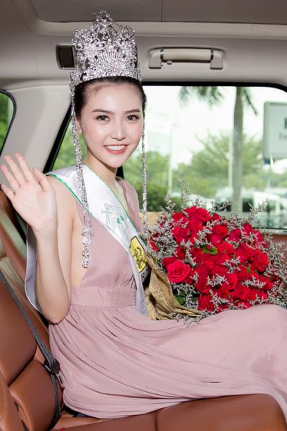 Ngọc Duyên về nước sau năm ngày đoạt vương miện hoa hậu