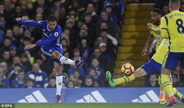 Ngược lại, Chelsea có sự tỏa sáng của Eden Hazard, cầu thủ là linh hồn cho chức vô địch năm 2015. Đây đã là trận thứ tư liên tiếp Hazard nổ súng tại Ngoại hạng Anh, nhưng điều đáng nói là sức ảnh hưởng của tiền vệ người Bỉ lên thế trận tấn công của Chelsea.