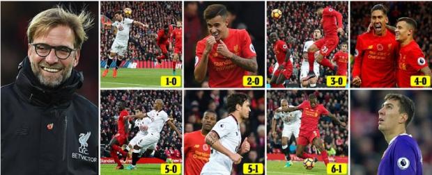 (Mane 27′, 60′, Coutinho 30′, Emre Can 43, Firmino 57′, Wijnaldum 90’+1 – Janmaat 75′)