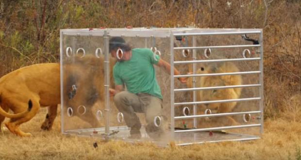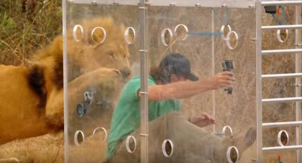 Một chàng trai người nước ngoài đã chấp nhận thử thách ngồi trong hộp kính ở lãnh thổ của những chú sư tử hoang dã. Phản ứng của chúng khiến anh vô cùng hối hận.