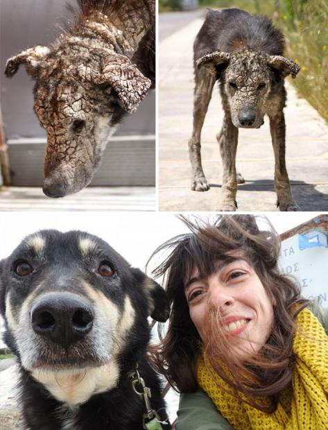 Chú chó đáng thương này được tìm thấy trong tình trạng vô cùng tồi tệ, da nó gần như “hóa đá”, trụi gần hết lông và bị suy dinh dưỡng trầm trọng. Lúc đó, nó khoảng 5 tuổi và rất hoảng sợ khi có người hay loài động vật nào lại gần tiếp cận nó. Chú chó được Tổ chức phúc lợi động vật phi lợi nhuận ở Hy Lạp giải cứu, tuy nhiên lúc ban đầu, họ phải rất kiên nhẫn mới có thể giúp nó tắm rửa và trị bệnh. Giờ đây, sức khỏe và diện mạo của chú chó ‘hóa đá’ đã hồi phục đến mức khó tin.