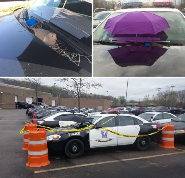 Một con chim nhỏ đã vô tình làm tổ trên xe cảnh sát. Khi nhìn thấy cảnh tượng này, những nhân viên cảnh sát không những không xua đuổi chim mà còn giúp nó xây cái tổ ấm cúng hơn, thậm chí họ còn dán băng không xâm nhập quanh chiếc xe vì sợ chú chim bị ‘làm phiền’.