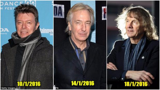 Đầu năm 2016, cả 3 nghệ sỹ này đã qua đời trong cùng 1 tuần, và cách nhau 4 ngày: David Bowie mất vào ngày 10/1, Alan Rickman mất vào ngày 14/1, còn Dale Griffin qua đời vào ngày 18/1.