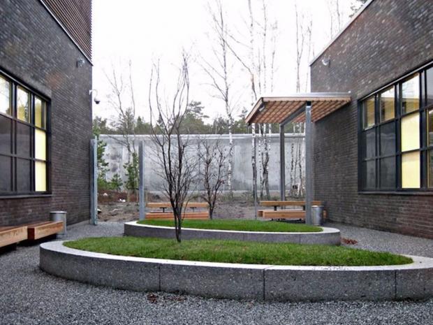 Nhà tù này do kiến trúc sư Erik Møller thiết kế với mục tiêu là mang thiên nhiên bao phủ xung quanh. Các tù nhân được quyền đến gần các cửa sổ để ngắm cây cỏ được trang trí quanh đó.