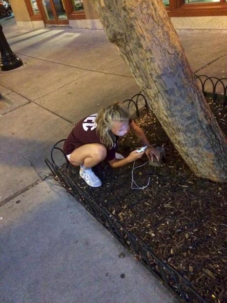 10. Bất chấp không gian và hoàn cảnh chỉ để sạc điện thoại đây mà. Hôm sau có lẽ nên đem cả nệm ra nằm luôn cũng nên.
