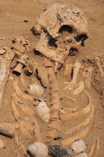 Bên cạnh những bộ xương này, ta tìm thấy xương của người đã cúng tế bọn trẻ. Các nhà khảo cổ gọi người này là “chúa tể những con ốc” và chắc đây là người quan trọng, người này đã chết cách đây 2800 năm, và dù trong lịch sử của những người này, đây là gì đi nữa, thì nó chính là di tích tang lễ quan trọng nhất của họ được phát hiện ra.
