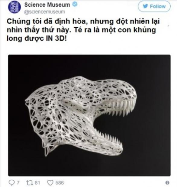 Theo Iflscience, London có hai bảo tàng cực kỳ hoành tráng và lừng lẫy thuộc hàng đệ nhất thế giới: Bảo tàng Lịch sử Tự nhiên (Natural History Museum) – nơi chứa đầy hóa thạch khủng long và núi lửa – và Bảo tàng Khoa học (Science Museum), nơi chứa đầy những hiện vật quý giá, tên lửa và những thứ máy móc bóng loáng, tinh vi. Thật khó để nói ai hơn ai, và đây chính là băn khoăn của một người dùng Twitter tên Bednarz khi anh đặt câu hỏi này cho hai bảo tàng trên trang cá nhân: