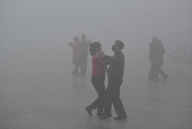 Người dân Bắc Kinh khiêu vũ trong khói bụi. Không khí sạch đang dần trở lên quá xa xỉ đối với nhiều thành phố tại Châu Á (Ảnh: AP)