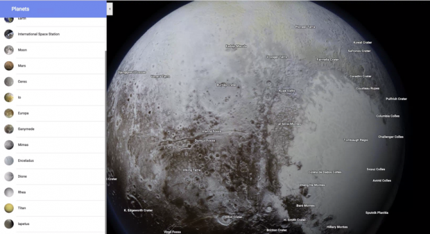 Theo trang tin Mashable vừa đăng tải, Google Maps vừa cập nhật thêm một tính năng mới cho phép người dùng có thể xem được những hình ảnh của các hành tinh trong hệ mặt trời ngoài trái đất bao gồm: Mặt Trăng, Sao Thuỷ (Mercury), Sao Kim (Venus), Sao Diêm Vương (Pluto), Sao Mộc (Jupiter)…