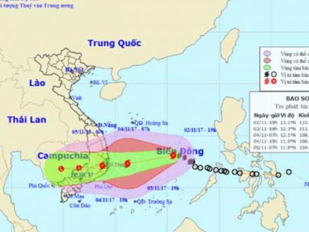 Theo Trung tâm Dự báo Khí tượng thủy văn Trung ương, hồi 19h ngày 2/11, vị trí tâm bão số 12 ở vào khoảng 13,1 độ Vĩ Bắc; 115,6 độ Kinh Đông, cách bờ biển Khánh Hòa - Ninh Thuận khoảng 680km về phía Đông. Sức gió mạnh nhất ở vùng gần tâm bão mạnh cấp 9 (75 - 90km/giờ), giật cấp 11.