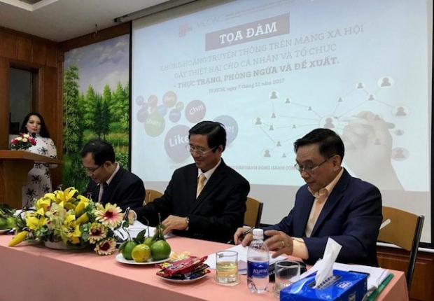 Các diễn giả cũng nêu ra một số thiệt hại do tin đồn trên mạng như câu chuyện một công ty hoạt động trong ngành xây dựng bỗng dưng bị “bay hơi” 1.500 tỉ đồng vốn hóa trên sàn chứng khoán do các tin đồn thất thiệt về hoạt động kinh doanh. Hoặc một số thương hiệu thực phẩm, bất động sản… thời gian qua cũng bị ảnh hưởng bởi tin đồn trên mạng, có người giả mạo trang cá nhân, trang công ty trên Facebook…