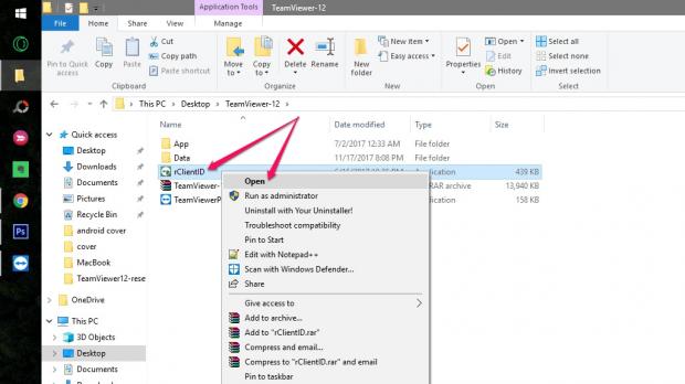 Sau khi tải về TeamViewer 12 Portable + Reset ID, bạn giải nén file vào một thư mục chung (bao gồm TeamViewerPortable và rClientID)