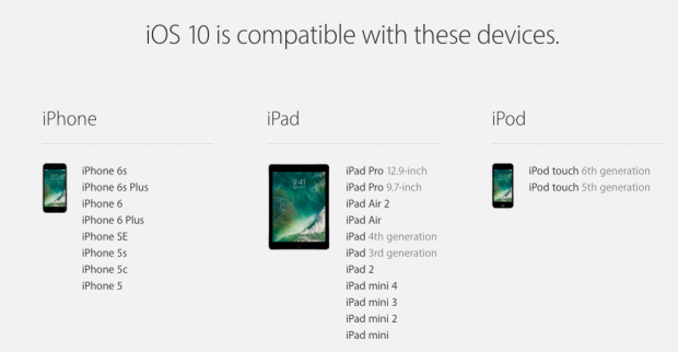 Đêm qua theo giờ Việt Nam, Apple đã chính thức công bố hệ điều hành iOS 10 với nhiều cải tiến đáng kể về giao diện cũng như hiệu năng sử dụng. Vậy những thiết bị nào nằm trong danh sách hỗ trợ của iOS 10?