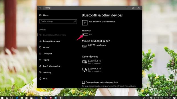 Bạn có thể vô hiệu hóa cả hai dịch vụ này với chế độ Airplane mode. Click vào biểu tượng Wi-Fi và bật Airplane mode. Để tắt Bluetooth, hãy truy cập Settings > Devices > Bluetooth & other devices.