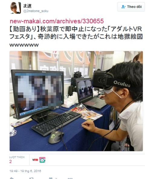 Triển lãm mang tên 'Adult VR Festival' diễn ra vào tháng 6 tại thủ đô Tokyo của Nhật Bản đã phải đóng cửa do có quá nhiều người xếp hàng để tham gia sự kiện xem phim khiêu dâm bằng kính thực tế ảo được diễn ra tại đây.