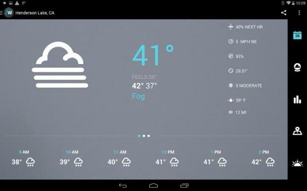 Có khả năng hỗ trợ các máy tính bảng với màn hình 7 hoặc 10 inch. Trong đó, khi xem chế độ ngang, người dùng còn có thể theo dõi sự thay đổi của nhiệt độ theo giờ qua một biểu đồ đường.