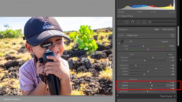 Ngoài nâng cấp lớn về Profile, ta còn thấy sự thay đổi vị trí của thanh công cụ Dehaze, bây giờ Dehaze cũng được đưa lên phía trên panel chỉnh sửa Basic, dễ dàng hơn cho ta thao tác chứ không mất công phải cuộn xuống mấy lần để kiếm.
