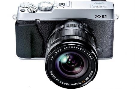 Mẫu máy ảnh không gương lật (mirrorless) X-E1 mới của Fujifilm với thiết kế nhỏ gọn, ống ngắm điện tử (khác với model “đàn anh' X-Pro1 có ống ngắm lai), và có thể sử dụng với ống kính kit mới Fujinon XF18-55mm F2.8-4.0 LM OIS. Máy có hai tông màu để lựa chọn là bạc và đen.
