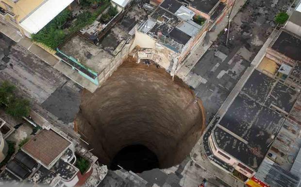 2. Đây là vết tích một 'hố tử thần' xuất hiện ngày 30/5/2010 tại trung tâm thành phố Guatemala, miền Trung Guatemala. Nó đã 'nuốt chửng' một nhà máy và ba trụ điện.