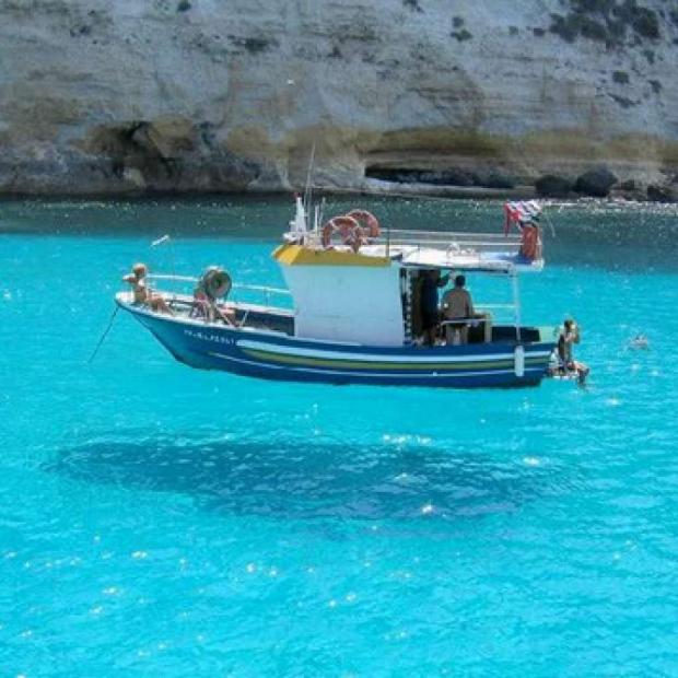 9. Nhìn qua chắc ai cũng sẽ tưởng con thuyền nổi trên không trung. Hình ảnh chiếc thuyền nổi trên mặt nước màu xanh lam trong vắt này được chụp ở đảo Lampedusa, thuộc Italia.