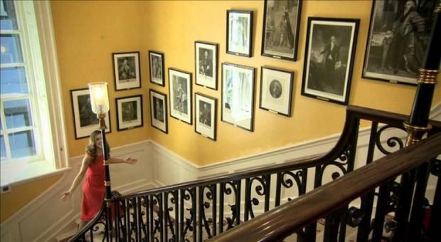 Cầu thang là nơi treo ảnh các đời Thủ tướng. (Ảnh: Youtube).