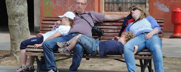 Dễ bắt gặp nhiều người ngủ gục nơi công cộng do mệt mỏi.