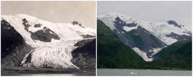 Sông băng Pedersen (Alaska) – ảnh chụp mùa hè năm 1917 và ảnh chụp mùa hè năm 2005
