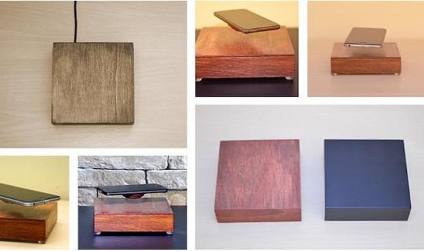 Như bạn có thể thấy, không có bất cứ dây kết nối nào giữa điện thoại và phần đế sạc bằng gỗ, ngoài vùng từ trường đủ mạnh để khiến điện thoại bay lơ lửng trên không.