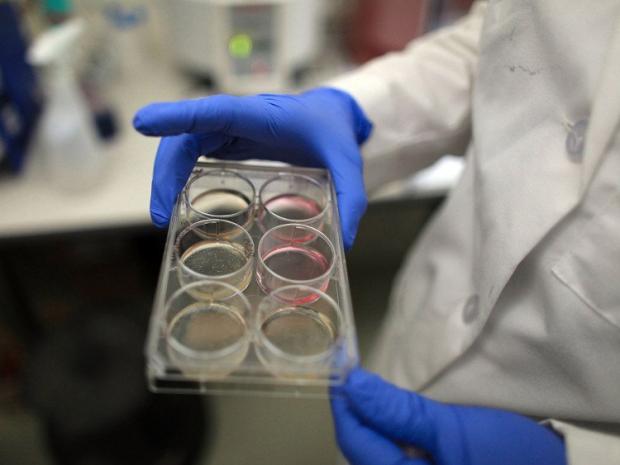 Trong bức ảnh này, một giáo sư đang cầm khay đựng tế bào gốc tại trường Đại học Connecticut.