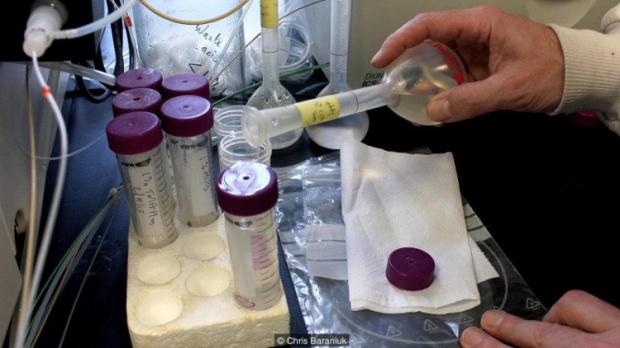 Kỹ thuật viên đang xem xét một trong các mẫu thực phẩm trước khi tiến hành phân tích. (Ảnh: Chris Baraniuk).