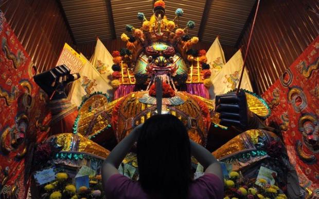 Các tín đồ đạo Phật cũng đến những ngôi đền ở Malaysia để cầu nguyện cho các vong linh và đốt hình nộm của thần bảo hộ các linh hồn cuối tháng lễ. (Ảnh: Saeed Khan / AFP / Getty).