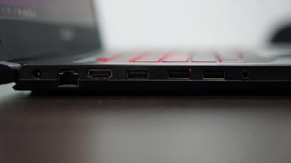 Phần cạnh trái được đặt các cổng kết nối như nguồn - sạc, HDMI, LAN, 3 ổ USB (một USB 2.0 và hai USB 3.0) cùng jack tai nghe 3.5mm.