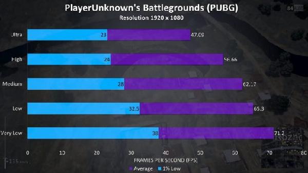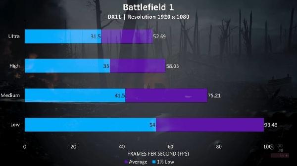 Kết quả kiểm tra nhận được khá tốt khi mức khung hình của máy ổn định từ mức trung bình đến khá cao khi thiết lập ở mức low, medium. Hai thiết lập khung hình còn lại vẫn cho được mức FPS hoàn toàn ổn định mà lại cho trải nghiệm đồ họa tuyệt vời.