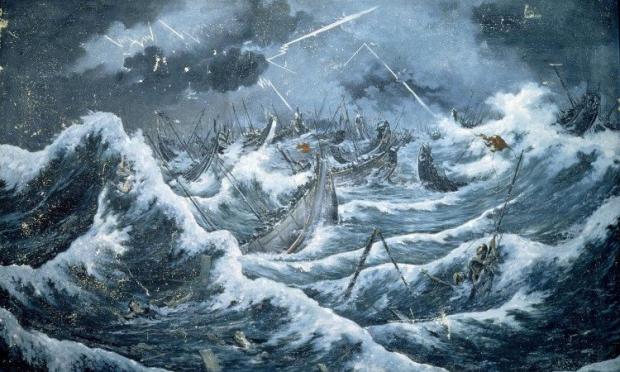 Cơn bão dữ dội khiến quân xâm lược Mông Cổ đại bại trước người Nhật. (Ảnh minh họa: Issho Yada).