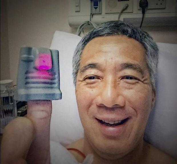 Thủ tướng Lý Hiển Long chia sẻ ảnh trên giường bệnh trước ca mổ năm 2015. (Ảnh: Straitstimes).